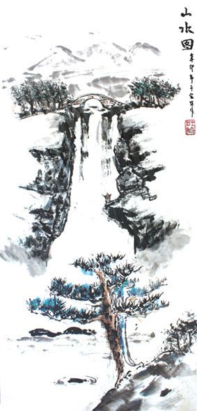 國畫:山水圖 作者:車隊(duì) 彭士凱