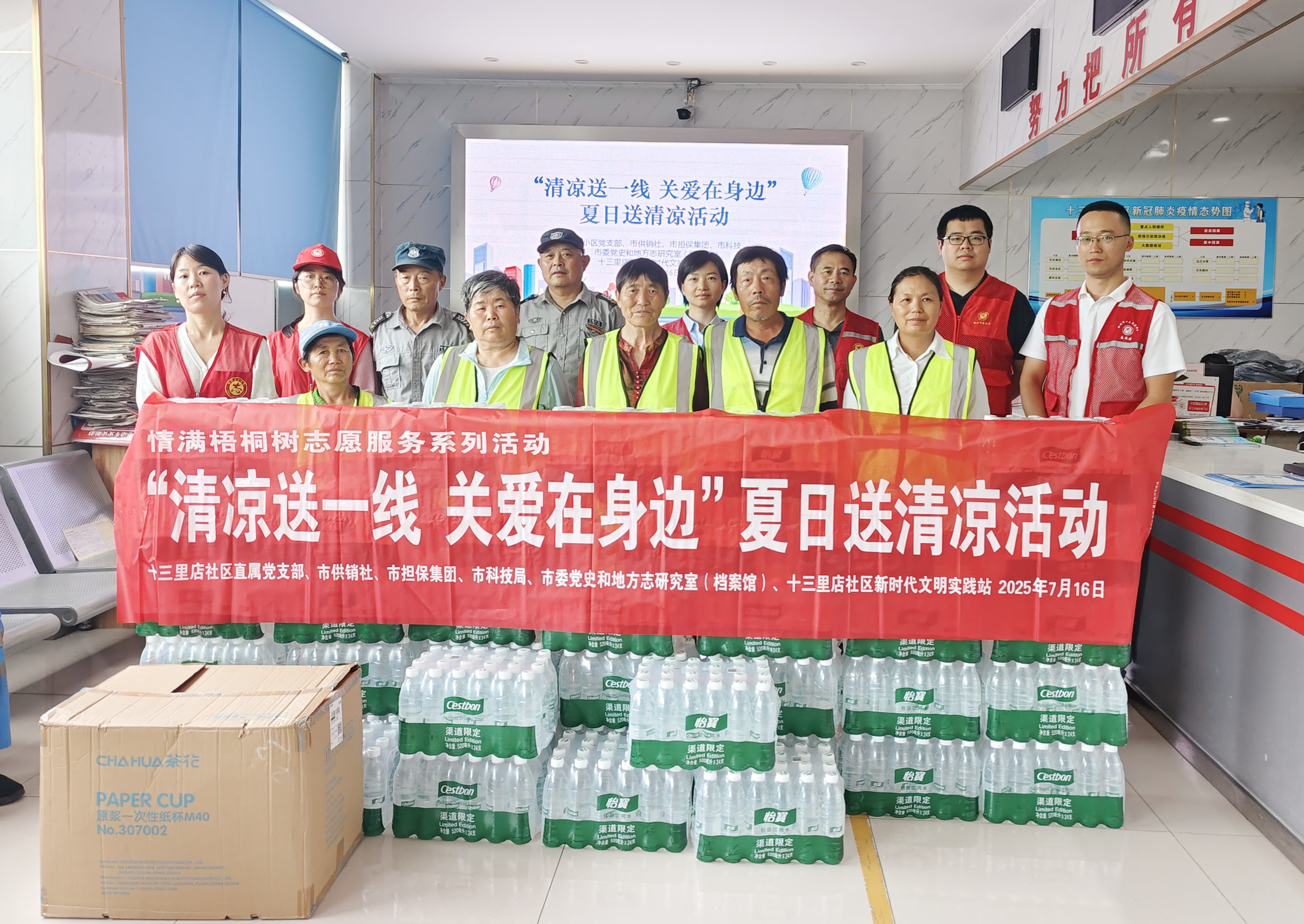 - 入夏以來,持續(xù)高溫炙烤大地,給戶外作業(yè)的環(huán)衛(wèi)工人帶來了嚴峻“烤”驗。為給炎炎夏日里高溫下作業(yè)的社區(qū)環(huán)衛(wèi)工人們送去一絲清涼和關愛,7月16日,市擔保集團三個黨支部聯(lián)合共建單位的黨組織,共同開展“清涼送一線 關愛在身邊”黨員志愿服務活動,為共建的十三里店社區(qū)全體環(huán)衛(wèi)工人送去黨組織的關懷與問候。 活動中,黨員志愿者們將提前準備好的礦泉水、毛巾、香皂、花露水等防暑降溫物品一一分送到轄區(qū)每一位環(huán)衛(wèi)工手中,并向他們表達真誠的問候和感激,是他們冒酷暑、頂烈日,用實際行動維護著社區(qū)的環(huán)境整潔,收到物品的環(huán)衛(wèi)工人們顯得格外開心。 通過夏日送清涼志愿服務活動,進一步拉近黨員與群眾的距離,密切黨群關系,把“我為群眾辦實事”落到實處。通過“小清涼”傳遞“大文明”,助力營造尊重勞動者、共建和諧文明社區(qū)的良好氛圍。下一步,市擔保集團將進一步發(fā)揮自身優(yōu)勢...