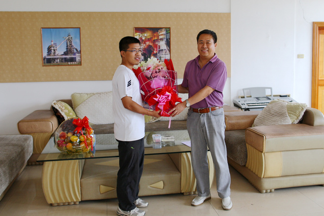 7月26日,鞍山市理科高考試狀元滿書奎同學到公司看望董事長,表達其感激之情。家境貧困的他在第十三中學就讀期間成績優(yōu)秀,每年都得到公司提供的萬元以上的“寶得獎學金”。 現(xiàn)已被清華大學錄取,董事長再次獎勵其兩萬元。