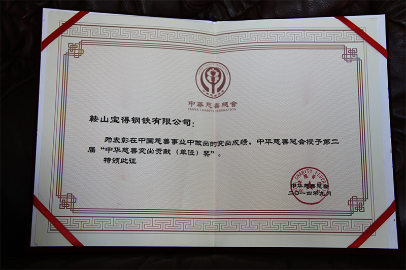 為表彰在中國慈善事業(yè)中作出的突出貢獻,中華慈善總會授予公司第二屆“中華慈善突出貢獻(單位)獎”。5月20日,副市長陳守義、市民政局局長解永浮、副局長龔毅濤及市慈善總會領(lǐng)導(dǎo)到公司頒獎,董事長、總經(jīng)理接受頒獎。