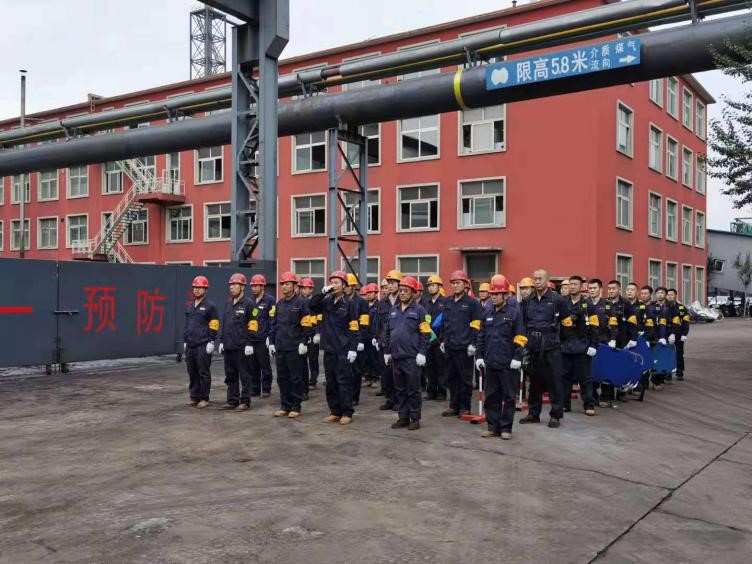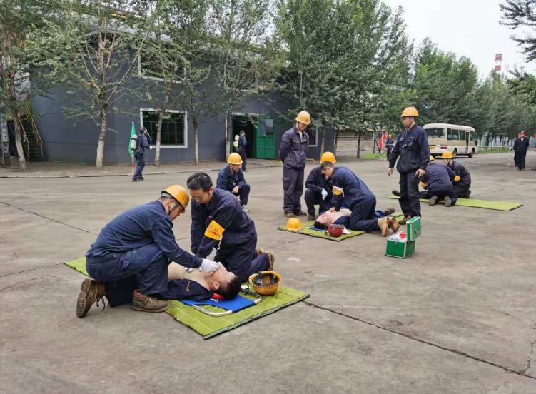 “報(bào)告馬廠長(zhǎng):我是當(dāng)班維護(hù)班長(zhǎng)曹雷,9點(diǎn)35分左右班內(nèi)三名員工在煤氣閥組平臺(tái)巡檢過程中發(fā)生煤氣中毒事故,請(qǐng)求立即支援”……;“請(qǐng)搶險(xiǎn)救援組、安全警戒組、醫(yī)療救護(hù)組…立即趕赴事故現(xiàn)場(chǎng)集結(jié)”;“報(bào)告總指揮:搶險(xiǎn)救援組10人到達(dá)現(xiàn)場(chǎng),6套呼吸器及3副擔(dān)架救援裝備完好,可正常使用”……;“各救援小組按預(yù)案規(guī)定程序及商定的實(shí)施方案,立即展開救援行動(dòng)”……;“報(bào)告總指揮:三名傷者已成功救出,兩人中毒較重,一人較輕,……”;“報(bào)告總指揮:煤氣泄漏部位搶修完畢,已無泄漏現(xiàn)象,設(shè)備可正常運(yùn)行”……。隨著一條條救援指令的下達(dá),現(xiàn)場(chǎng)警戒、現(xiàn)場(chǎng)救援、傷員急救、設(shè)備搶修、現(xiàn)場(chǎng)清理及組織生產(chǎn)恢復(fù)等過程緊張、有序地完成,實(shí)戰(zhàn)演練圓滿結(jié)束。