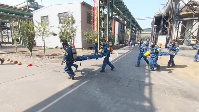 本次演練,煉鐵廠主要領導高度重視、準備充分、計劃周密,并且主要領導和50余名不同崗位、不同工種的一線員工親自參加;使用了空氣呼吸機、蘇生器、擔架、警戒帶、警示燈、對講機、應急救援車輛、應急救援專用袖標、消防救援服、滅火器、消防水帶及撒水車等應急物資和裝備;本次實戰(zhàn)演練展現(xiàn)出指令明確、集結(jié)迅速、裝備整齊、信息傳遞暢通、救援行動規(guī)范、醫(yī)療救護到位、滅火動作嫻熟、后勤保障可靠等諸多特點。